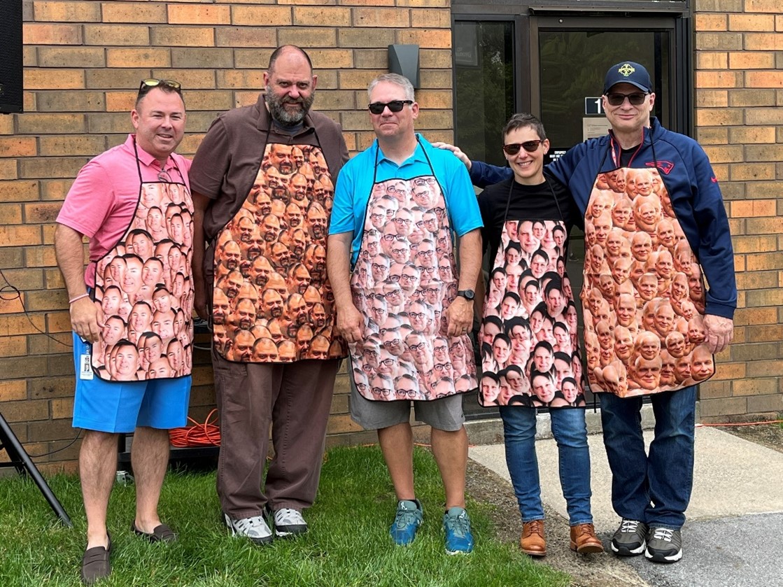 Servers for the day – Michael Milligan, Rick Cote, Shawn Skelly, Kate Targett, Brad Smith – Yes, their aprons are adorned with their faces.